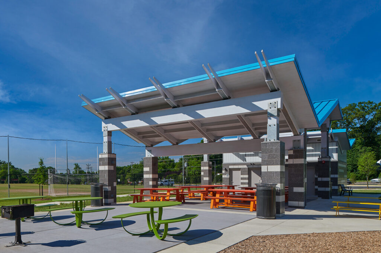 Structura played a key role in the design and construction of the new picnic shelter structures at Hillandale Local Park, ensuring they complemented both the park’s functionality and its natural surroundings. Structura was responsible for designing the structural framework that supports the shelters’ durability while integrating seamlessly with the existing park amenities. The team conducted a comprehensive structural analysis to meet rigorous safety standards and environmental requirements, particularly given the park’s proximity to sensitive land and a Paint Branch tributary.